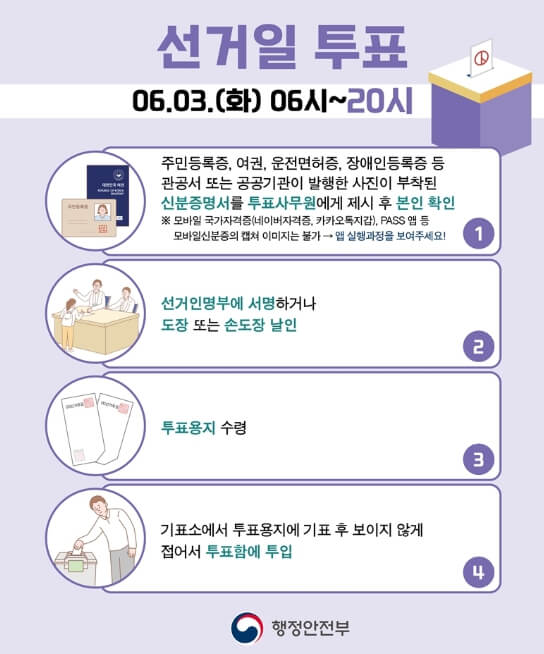 본투표는 6월 3일(화) 오전 6시부터 오후 8시까지입니다!