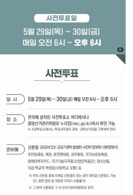 제21대 대통령선거 사전투표일정은 2025년 5월 29일(목)~30일(금), 단 이틀뿐!