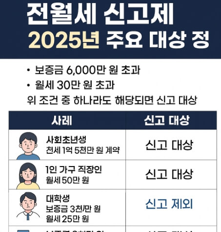조언: 보증금이 낮아도 월세가 기준 넘으면 신고 대상이 됩니다.