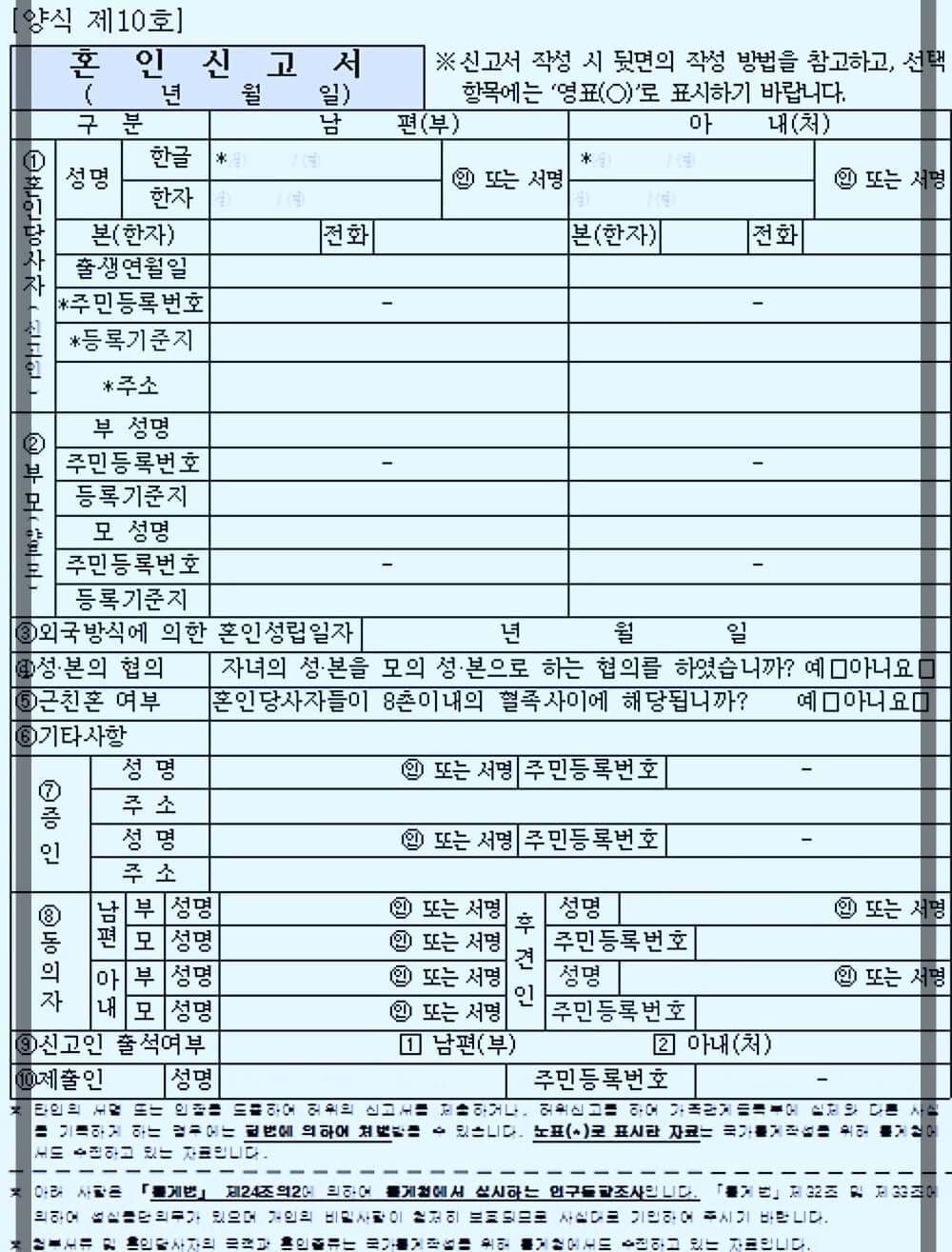 - 혼인신고서 양식 다운 및 작성(양가 정보 정확히!)